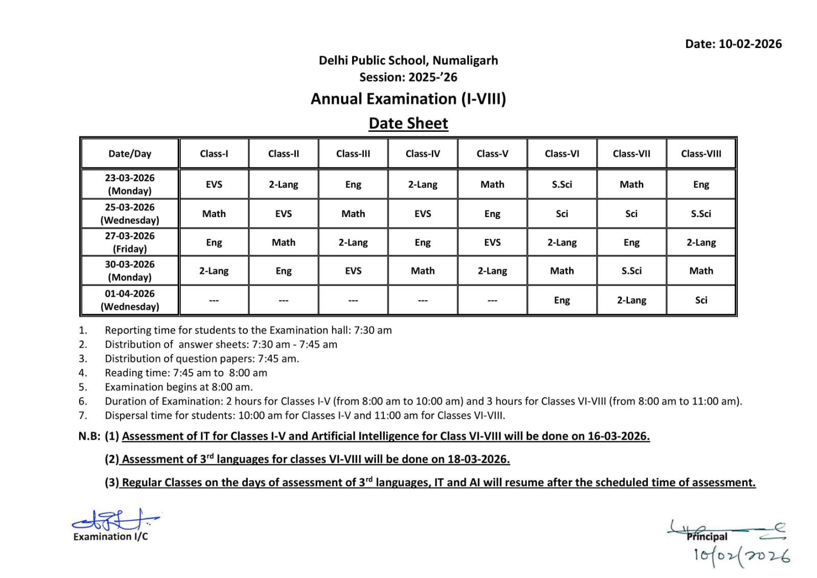 1 Date Sheet Annual Exam for (Class- I-VIII) Session 2025-26 pdf icon | Delhi Public School